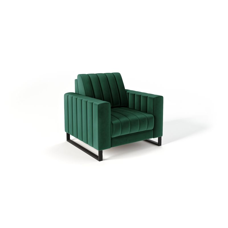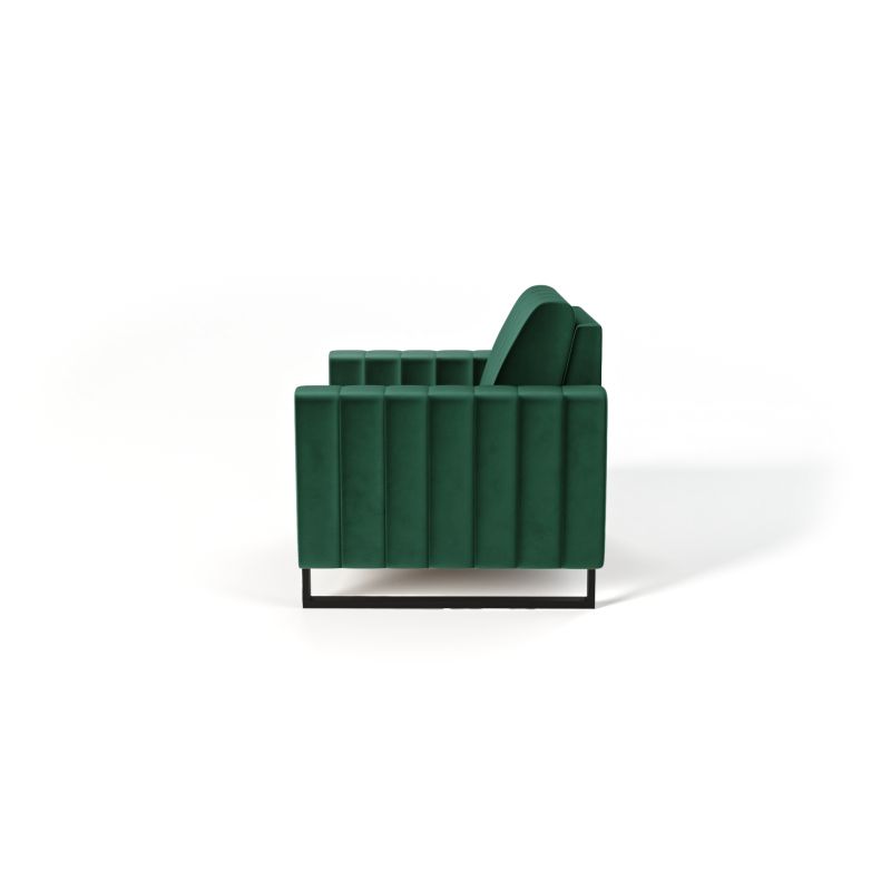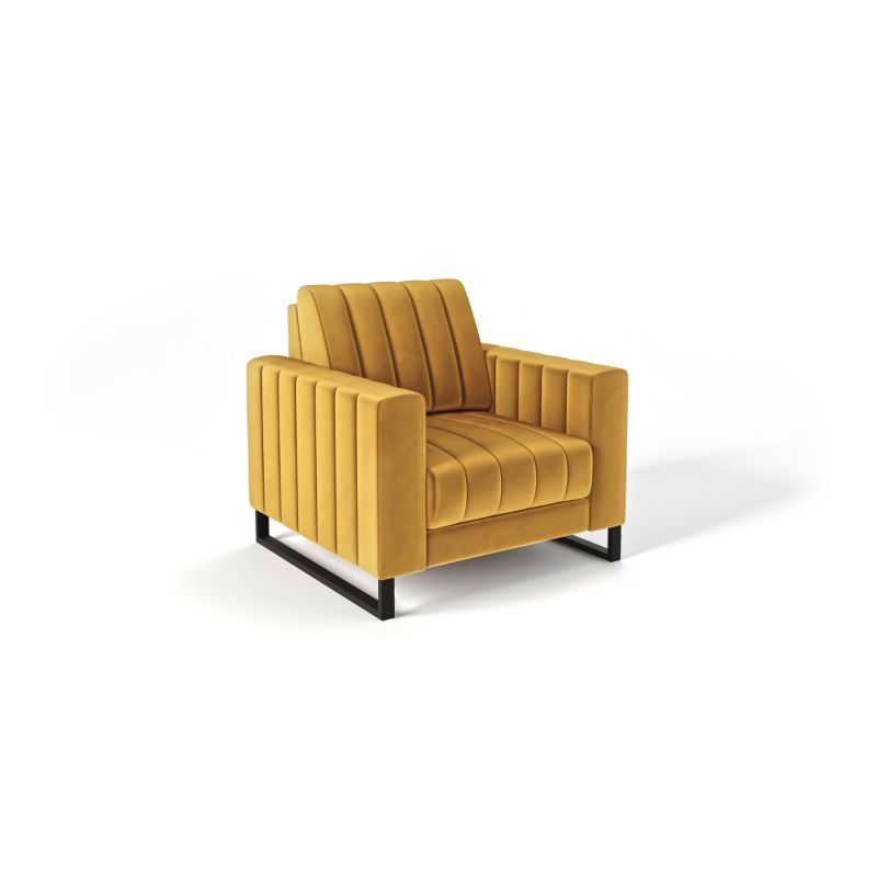 Wysokie podłokietniki, komfortowe oparcie i miękkie siedzisko wypełnione pianką wysokoelastyczną oraz sprężyną falistą zapewniają najwyższy poziom wygody. To idealne miejsce, aby odpocząć po intensywnym dniu, poczytać ulubioną książkę lub zrelaksować się przy aromatycznej kawie. Stabilne, metalowe nóżki podkreślają loftowy charakter mebla, dodając mu lekkości i elegancji.