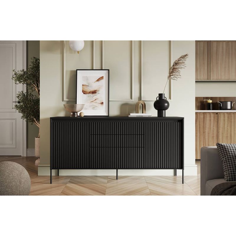Komoda TR-01 v.2 została wykonana z wysokiej jakości materiałów, co gwarantuje trwałość i stabilność mebla. Metalowe nogi nadają jej lekkości, a jednocześnie stanowią solidną podstawę. Dzięki uniwersalnej stylistyce świetnie odnajdzie się zarówno w salonie, sypialni, jak i w nowoczesnym przedpokoju.
