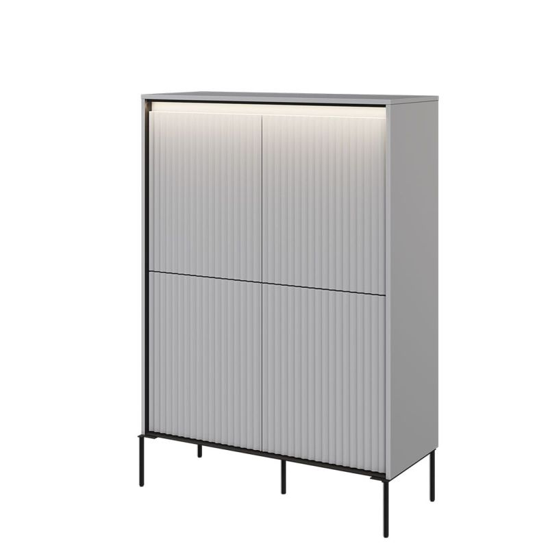 Wysoka i ustawna komoda Trend to funkcjonalne rozwiązanie do wnętrz, w których liczy się pojemność przy zachowaniu kompaktowej szerokości. Smukła bryła oferuje dużo miejsca do przechowywania, jednocześnie nie dominując przestrzeni. Pełne fronty skutecznie osłaniają zawartość, a metalowe nóżki unoszą mebel nad podłogą, nadając mu lekkości i ułatwiając sprzątanie.