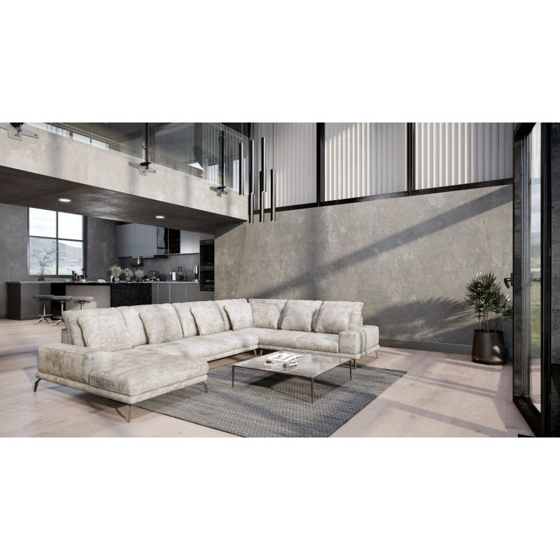 Narożnik NORTH to innowacyjny, modułowy system wypoczynkowy stworzony dla osób, które oczekują pełnej funkcjonalności połączonej z wyrazistym, nowoczesnym designem. Industrialny charakter mebla podkreślają stalowe elementy konstrukcyjne, dzięki którym narożnik prezentuje się wyjątkowo solidnie i stylowo, stając się centralnym punktem ekskluzywnego salonu.