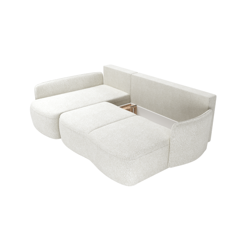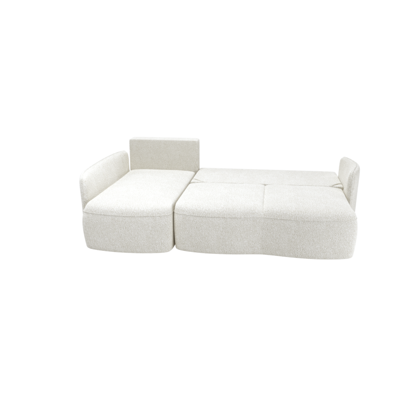 Model wyposażony jest w funkcję spania opartą na wspomaganym mechanizmie DL, który umożliwia szybkie i bezproblemowe rozkładanie narożnika. Po transformacji uzyskujemy wygodną powierzchnię spania o wymiarach 130 × 210 cm — idealną do codziennego wypoczynku lub przenocowania gości. Dodatkowym atutem jest pojemny schowek na pościel, pozwalający zachować porządek i wygodnie przechowywać tekstylia.