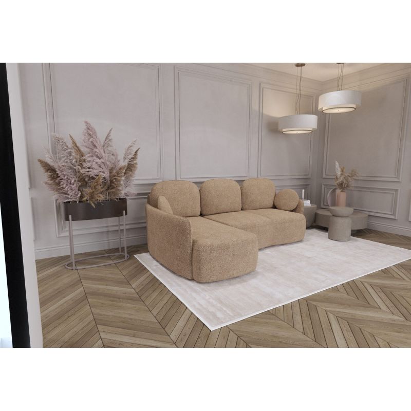 Narożnik Nicola to nowoczesny i elegancki mebel, który łączy komfort codziennego użytkowania z praktycznymi rozwiązaniami. Jego subtelna forma, zaokrąglone linie oraz starannie dobrane detale sprawiają, że doskonale wpisuje się w aktualne trendy wnętrzarskie, dodając pomieszczeniu przytulności i stylu.
