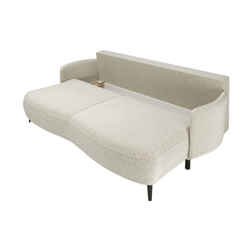 Oprócz wyjątkowej estetyki, BIANCA oferuje również praktyczne rozwiązania. Sofa została wyposażona w łatwy w obsłudze mechanizm rozkładania, który w kilka chwil przekształca ją w wygodne łóżko o powierzchni 145 × 200 cm. Dodatkowy pojemnik na pościel stanowi idealne miejsce do przechowywania koców, poduszek czy kołder, pomagając utrzymać porządek w salonie.