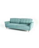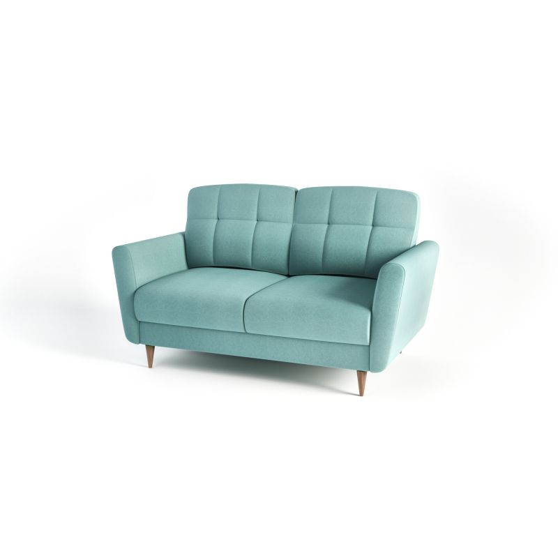 Komfort użytkowania zapewnia miękka pianka wysokoelastyczna wzmocniona sprężynami falistymi, dzięki czemu siedzisko i oparcie są jednocześnie przyjemnie miękkie i odpowiednio sprężyste. Sofa została osadzona na wysokich, drewnianych nóżkach, które dodają jej lekkości oraz ułatwiają zachowanie czystości pod meblem. To doskonała propozycja do salonu, pokoju dziennego, przestrzeni gościnnej lub młodzieżowej.