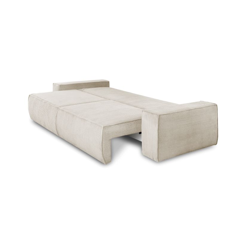 Model wyposażony został w zaawansowany system rozkładania, który umożliwia szybkie i bezproblemowe przekształcenie sofy w wygodne łóżko o powierzchni 140 × 200 cm. Dzięki temu mebel doskonale sprawdzi się zarówno w codziennym użytkowaniu, jak i podczas nocowania gości. Dodatkowym atutem jest pojemny schowek na pościel, który ułatwia utrzymanie porządku i pozwala optymalnie wykorzystać przestrzeń.