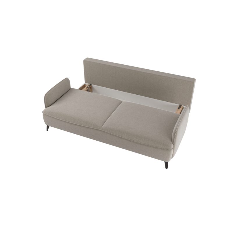 Sofa została wyposażona w łatwą w obsłudze funkcję spania, która w kilka chwil zamienia ją w pełnowymiarowe łóżko. To idealne rozwiązanie zarówno na co dzień, jak i podczas wizyty gości. Pojemny schowek na pościel pozwala utrzymać porządek i sprytnie zagospodarować domową przestrzeń, co czyni Polę meblem wyjątkowo praktycznym.
