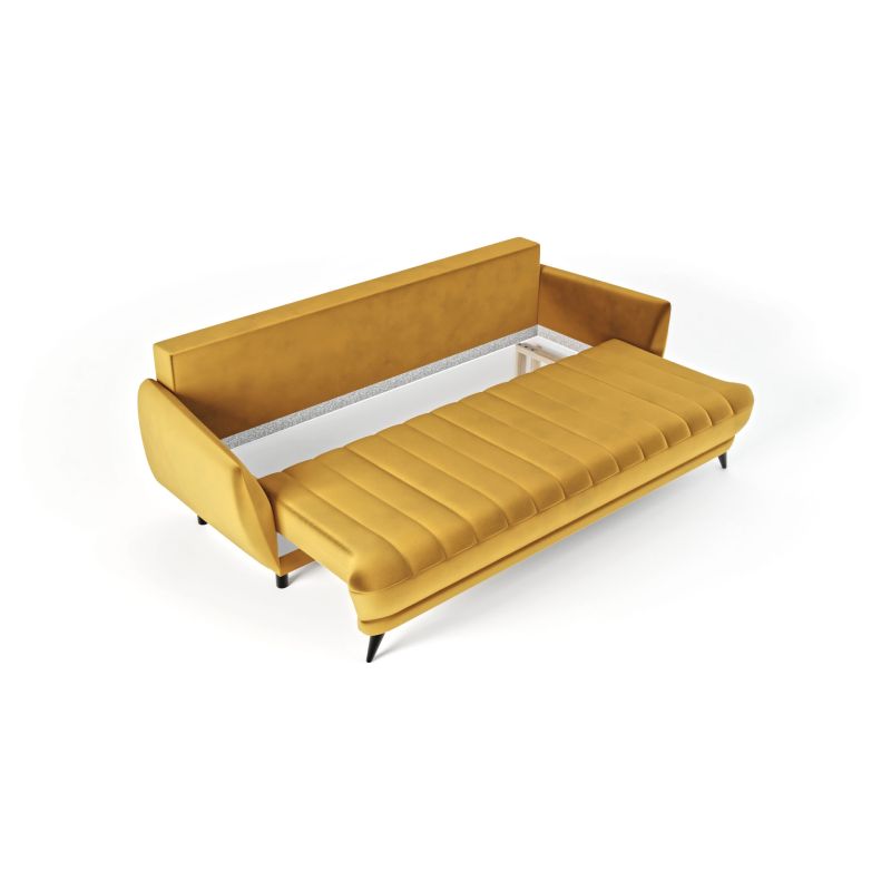 Model wyposażony jest w funkcję spania typu DL, która umożliwia szybkie i wygodne rozłożenie kanapy, tworząc komfortową powierzchnię snu o wymiarach 140 × 200 cm. Dodatkowo kanapa posiada pojemny schowek na pościel, dzięki czemu łączy elegancki wygląd z praktycznością — idealnie sprawdzi się zarówno na co dzień, jak i podczas przyjmowania gości.