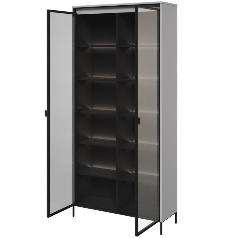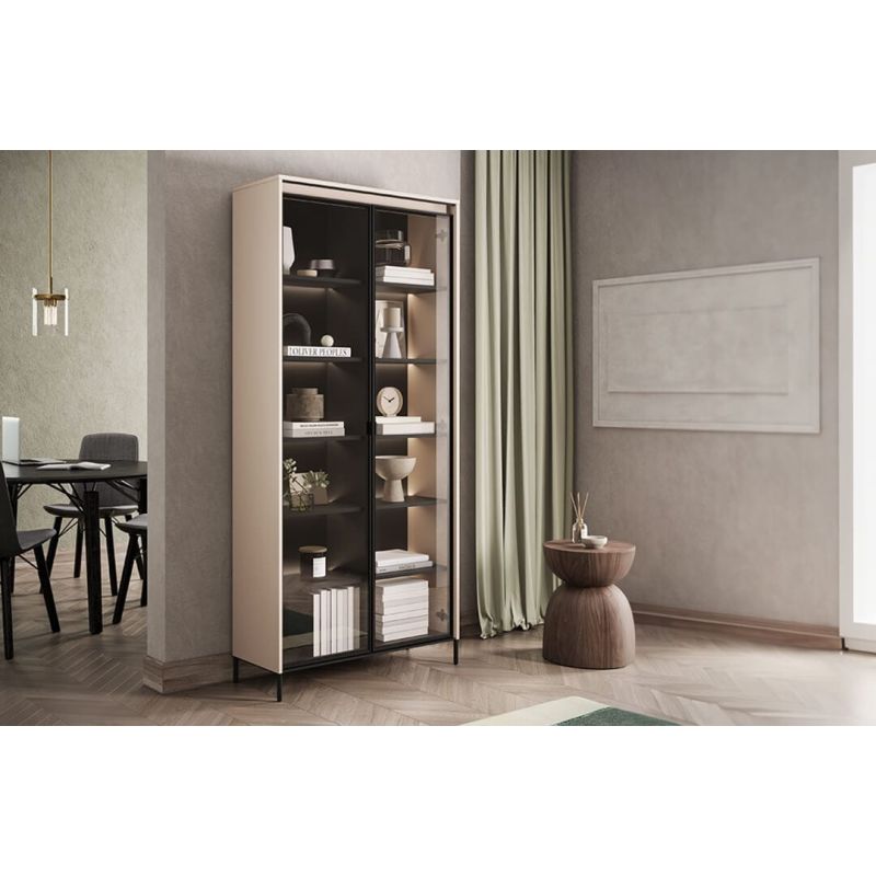 Wielopoziomowe wnętrze z licznymi półkami oferuje dużą swobodę aranżacji przechowywanej zawartości. Witryna doskonale sprawdzi się do ekspozycji zastawy stołowej, szkła, książek lub dekoracji, umożliwiając logiczne rozmieszczenie przedmiotów i utrzymanie estetycznego porządku.