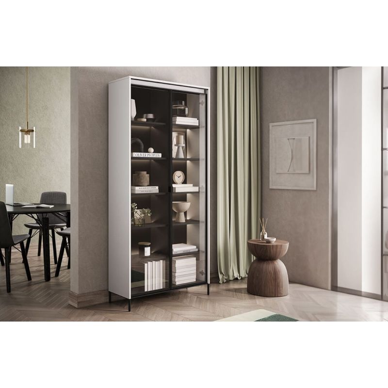 Witryna Trend to funkcjonalny mebel ekspozycyjny, który łączy nowoczesną formę z praktycznym przechowywaniem. Przeszklony front pozwala efektownie wyeksponować zawartość, jednocześnie chroniąc ją przed kurzem. Dwie uchylne części frontu z drzwiami otwieranymi na lewą stronę zapewniają wygodny dostęp do wnętrza.
